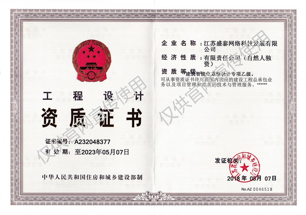 2018年5月7日,我公司榮獲建筑智能化系統(tǒng)設計專項乙級資質。該資質的升級使公司的專業(yè)水平又上一個臺階,為公司進一步增強市場競爭力、更快更好發(fā)展奠定了堅實的基礎...